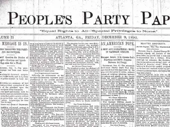 Despite its early struggle for circulation, its financial strain (Watson personally absorbed all costs) and the heaping ridicule it received from the Democratic press, the People’s Party Paper ran unabated for eight years with Watson at the helm. By 1893, two years after he launched it and a year after he had been counted out of Congress, Watson claimed the paper went to every state in the union and its circulation was second in Georgia only to the Atlanta Constitution. Three years later, riding the high water mark of the People’s Party, Watson’s paper was nationally known and quoted routinely. Watson also was a frequent contributor to the Populist journal, Arena, and to other national periodicals.