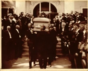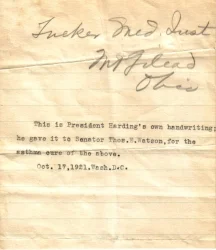 Despite having fallen seriously ill several weeks before, Watson insisted on attending and speaking on the final day of session, September 22, 1922. His precarious health continued to decline and on the night of September 25, suffering from chronic asthma, he was unable to rise from bed. Watson died of a cerebral hemorrhage on September 26, 1922 at his rented home in Chevy Chase, Maryland. Watson’s fiery assistant, Alice Lytle, remained in Maryland to handle the arrangements. Upon learning of the railway’s intention to place the Senator’s casket into a baggage car, Lytle protested: “The Senator did not arrive in Washington in a baggage car; he will not go home that way.” Watson’s body was returned to Thomson via a Pullman car.